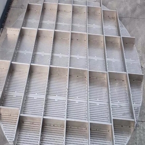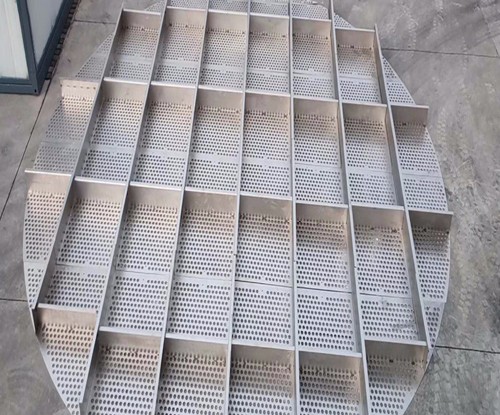 脫硫塔、噴淋塔、冷卻塔、濕電除塵等脫硫脫銷除塵設備煙氣均布裝置,材(cái)質一般有304,316L,2205,2507,1.4529,C-276等,厚(hòu)度2-4mm,通(tōng)孔率35-45%,圓孔直徑一般35mm,托盤(pán)的大小根據塔體的直徑變化,合金托盤(pán)整套設備包含:托盤主(zhǔ)體,抱箍,夾板,定矩管(guǎn),螺栓組(zǔ)件等。一般裝在脫硫脫銷設備(bèi)下氣室,高度根據塔大小確定。