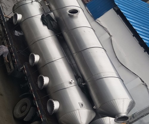 工業廢氣(qì)經離心風機輸送至脫硫塔,經脫硫塔內部的合金托盤,格柵,噴淋等配(pèi)件進(jìn)行對氣體的處理,從而達到******對工業廢氣的排放(fàng)標準。