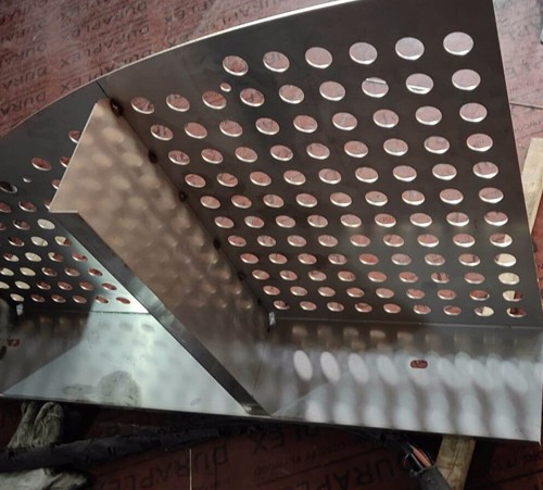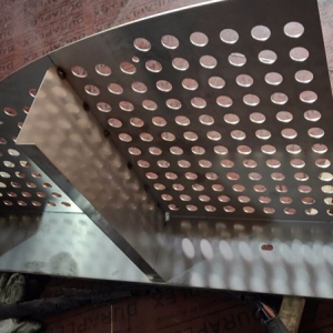 脫硫塔、噴淋塔(tǎ)、冷卻塔、濕電除塵等脫硫脫銷(xiāo)除塵設備煙氣均布裝置,材質一(yī)般有304,316L,2205,2507,1.4529,C-276等,厚(hòu)度2-4mm,通孔率35-45%,圓孔直徑(jìng)一般35mm,托盤的大小根據(jù)塔體的直徑變(biàn)化,合金托盤整套設備包含:托盤主體,抱箍,夾(jiá)板,定矩管,螺栓組件等。一般裝在脫硫脫銷設備下氣室,高度(dù)根據(jù)塔大小確定(dìng)。